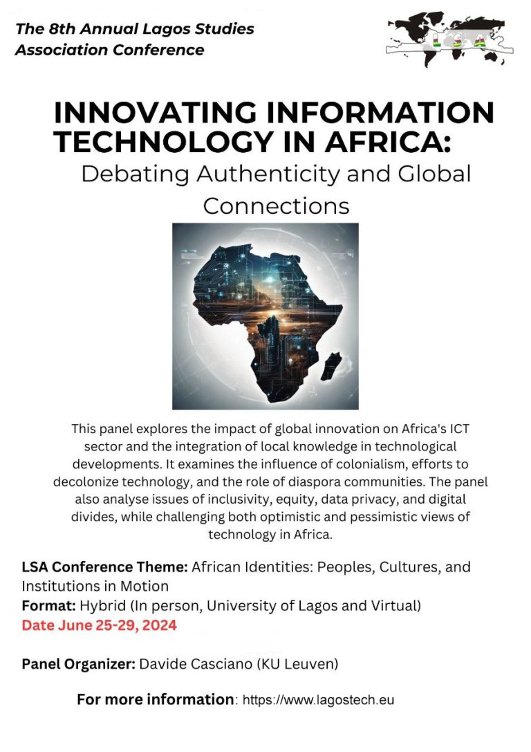 This panel for the 8th Annual LSA conference explores the impact of global innovation on Africa's ICT sector and the integration of local knowledge in technological developments. It examines the influence of colonialism, efforts to decolonize technology, and the role of diaspora communities. This panel also analyse issues of inclusivity, equity, data privacy, and digital divides, while challenging both optimistic and pessimistic views of technology in Africa.